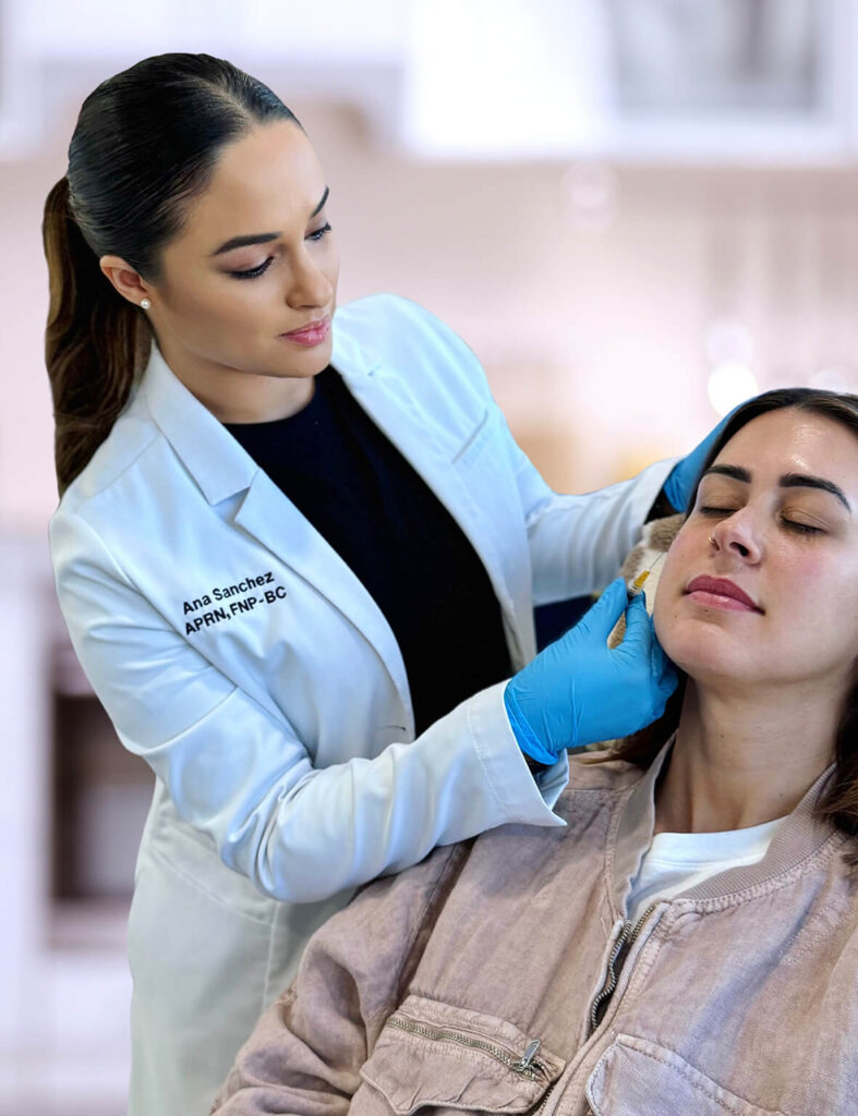 Driven by a profound commitment to aesthetic excellence and patient well-being, Ana Sanchez founded Aesthetics by Ana to help others feel confident in their own skin. She is a board-certified family nurse practitioner (FNP-BC) with a master’s degree from the University of Miami. Ana’s background in emergency medicine has shaped her precision, clinical expertise, and dedication to exceptional patient care. By balancing medical knowledge with an artistic eye, she delivers naturally beautiful results tailored to each client’s unique features.